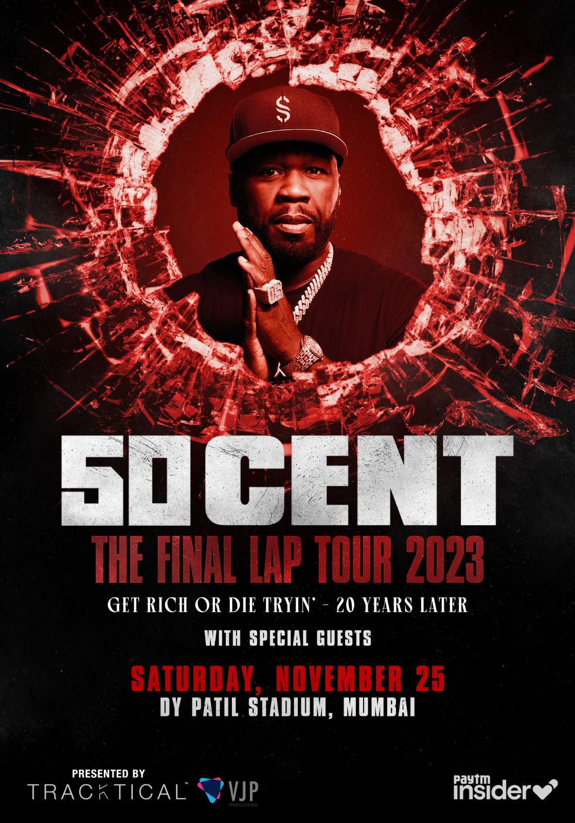 சர்வதேச அளவில் மிகவும் பிரபலமான கிராமி மற்றும் எம்மி விருதுகளை வென்ற புகழ்பெற்ற கலைஞர் கர்டிஸ் 50 சென்ட் ஜாக்சன் தனது உலகளாவிய இசைக்கச்சேரி “The Final Lap Tour 2023” இந்தியாவில் நவம்பர் 25 ஆம் தேதி நடைபெற இருக்கிறது. இந்த வரலாற்று நிகழ்வு இசைக்கச்சேரியானது 50 சென்ட்-இன் “Get Rich or Die Tryin” ஆல்பத்தின் 20-ஆவது ஆண்டு விழாவை குறிக்கிறது. இந்த நிகழ்ச்சி மும்பையில் உள்ள டி.ஒய்.பாட்டீல் அரங்கில் நடைபெற உள்ளது.