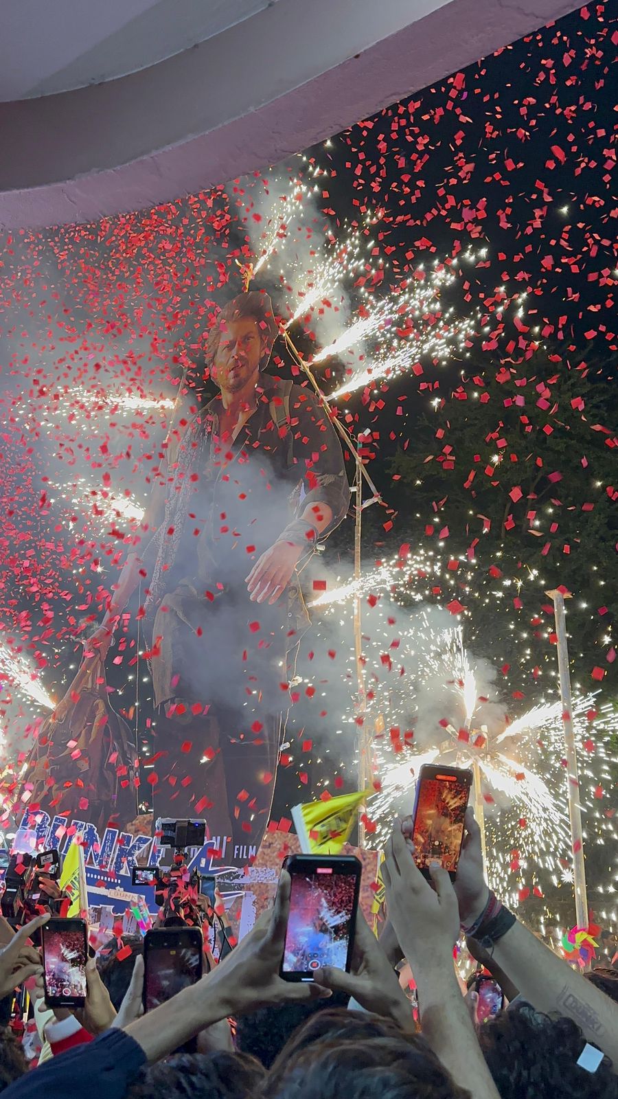 ட்விட்டரில் ரசிகர்கள் பகிர்ந்துள்ள வீடியோக்களில் ஷாருக்கின் ரசிகர்கள் ஒன்றாக நடனம் ஆடுவதை காண முடிகிறது. அதே நேரத்தில் மேளதாளத்தின் ஒலிக்கு ஏற்ப நடனமாடி தங்களின் மகிழ்ச்சியான மனநிலையையும் வெளிப்படுத்தினர். ஒரு சில ரசிகர்கள் டங்கி என எழுதப்பட்ட பதாகையை உயர்த்திப் பிடித்து இருப்பதையும் காண முடிந்தது. பட்டாசு வெடிப்பதற்காக சிறிய மேடை ஒன்றும் ஏற்பாடு செய்யப்பட்டிருந்தது. படத்தின் பிரீமியர் காட்சிக்காக காத்திருந்த ரசிகர்கள் திரையரங்கத்திற்கு வெளியே நடனமாடிக் கொண்டிருந்தனர். இது தொடர்பான காணொளிகளை தொடர்ந்து கீழே காணலாம்.