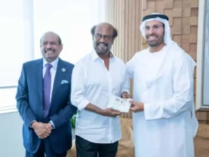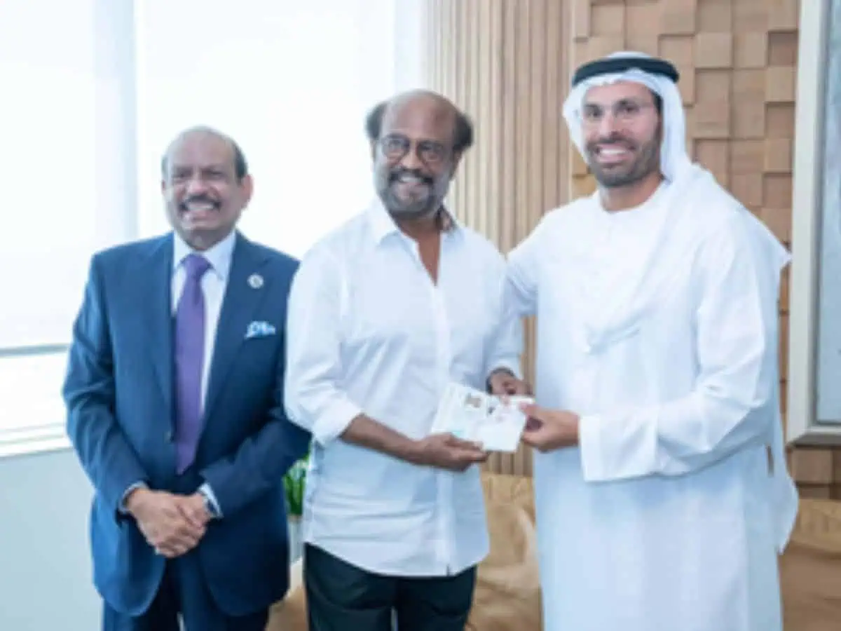 பிரபல லுலு மால்களின் தலைவரும், தொழிலதிபருமான எம்.ஏ.யூசுப் அலி முன்னிலையில் டிடிசி தலைவர் முகமது கலீஃபா அல் முபாரக் கோல்டன் விசாவை நடிகர் ரஜினிகாந்துக்கு வழங்கி கெளரவித்தார். விசா கிடைத்ததும் ரஜினிகாந்த் கூறுகையில், ஐக்கிய அரபு எமிரேட்ஸ் அரசிடம் இருந்து விசா அனுமதி கிடைத்ததில் பெருமை அடைகிறேன்.