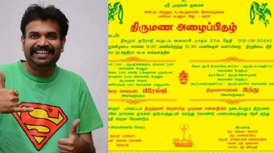 பல நிகழ்ச்சிகளில் கலந்துக்கொள்ளும் இவரை எப்போது தான் கல்யாணம் பண்ண போறீங்கள் என கேள்வியால் வாட்டி வதைத்து வந்தனர். இந்நிலையில், இந்து என்ற பெண்ணை திருமணம் செய்ய இருக்கிறார். இவர்களது திருமணம் வரும் 9ம் தேதி திருத்தணியில் நடைபெற உள்ளது. இவர்களது திருமண பத்திரிக்கை தற்போது இணையத்தில் வைரலாகி வருகிறது.