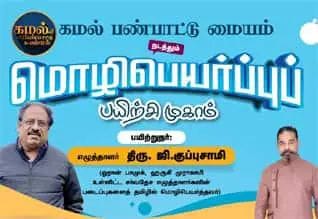 அதில், ‘தமிழில் மொழிபெயர்ப்பு முயற்சிகளை ஊக்குவிக்கும் நோக்கத்துடன் கமல் பண்பாட்டு மையம் மொழிபெயர்ப்பு பயிற்சி முகாம் நடத்துகிறது. ஓரான் பாமுக், ஹருதி முரகாமி உள்ளிட்ட பல சர்வதேச எழுத்தாளர்களின் படை ப்புகளை தமிழில் மொழி பெயர்த்த எழுத்தாளர் ஜி. குப்புசாமி பயிற்றுவிக்கிறார். இந்த பயிற்சி முகாமில் கலந்து கொள்ள விரும்புபவர்கள் தங்களது சுயவிவரத்துடன் கமல் பண்பாட்டு மையத்தின் மின்னஞ்சல் முகவரிக்கு விண்ணப்பிக்கலாம். அத்துடன் சொந்தமாக மொழிபெயர்த்த ஒரு கட்டுரை அல்லது ஒரு சிறுகதையை அந்த மொழிபெயர்க்கும் மூல வடிவத்தோடு இணைத்து அனுப்ப வேண்டும். பயிற்றுனரால் தேர்ந்தெடுக்கப்படுபவர்களுக்கு செப்டம்பர் 26 மற்றும் 27 ஆகிய தேதிகளில் சென்னையில் பயிற்சி அளிக்கப்படும்,’ என்று தெரிவித்திருக்கிறார் கமல்ஹாசன்.