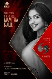 இந்நிலையில், படத்தில் நடிக்கும் மற்றொரு நபர் குறித்த அறிவிப்பையும் படக்குழு வெளியிட்டுள்ளது. அந்த அறிவிப்பின் படி, பிரேமலு திரைப்படம் மூலம் மலையாள ரசிகர்கள் மட்டுமல்லாது, தமிழ் ரசிகர்களையும் இழுத்த 2கே கிட்ஸ்களின் க்ரஷ் ஆன மமிதா பைஜூ நடிக்க உள்ளார் என்பது உறுதி செய்யப்பட்டுள்ளது.