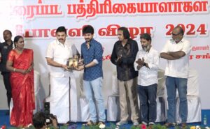 தமிழ்த் திரைப்பட பத்திரிகையாளர்கள் சங்கத்தின் தீபாவளி திருவிழா(2024) நேற்று மாலை ,மிகப் பிரம்மாண்டமாகவும் கோலாகலமாகவும் நடந்தது. நிகழ்ச்சியில் சிறப்பு விருந்தினர்களாக மாண்புமிகு ஆதி திராவிடர் நலத்துறை அமைச்சர் டாக்டர் திரு.மதிவேந்தன் அவர்கள் மற்றும் இந்த வருடத்தின் மிக பெரிய வெற்றி பெற்ற லப்பர் பந்து பட ஹீரோ ஹரிஷ் கல்யாண் இருவரும் கலந்து கொண்டு விழாவை சிறப்பித்தனர். இந்த நிகழ்வில், மூத்த பத்திகையாளர்கள் , கங்காதரன், தேவி மணி, திரை நீதி செல்வம் ஆகியோருக்கு பாராட்டும் பரிசும் வழங்க பட்டது .