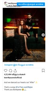 தென்னிந்திய சினிமாவில் முன்னணி நடிகையாக வலம் வருபவர் கீர்த்தி சுரேஷ். இவருக்கு கடந்த 12-ம் தேதி கோவாவில் திருமணம் நடைபெற்றது.