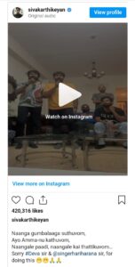 ஐயோ அம்மா-னு கத்துவோம், நாங்களே பாடி, நாங்களே கை தட்டுவோம். தேவா சார் & ஹரிஹரன் சார், இதைச் செய்ததற்கு மன்னிக்கவும் என்று பதிவிட்டுள்ளார்.
